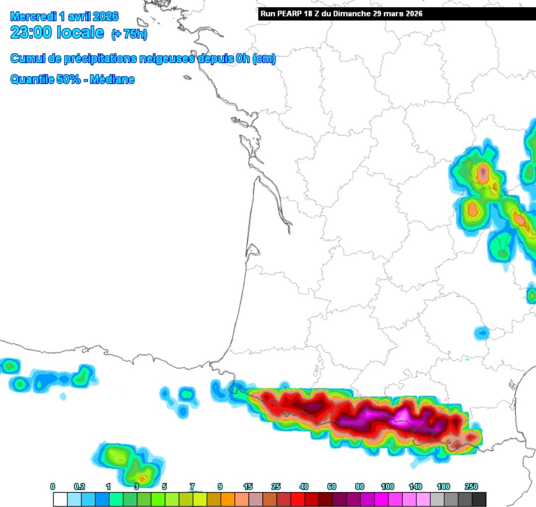 ❄️ Retour de l'hiver en force : Cumuls de neige remarquables attendus ! Les modèles sont formels pour un fort épisode neigeux sur les Pyrénées. Entre le Luchonnais et l’Ariège, les cumuls de neige pourraient atteindre le mètre au-dessus de 1800m d’ici jeudi ⚠️ pic.x.com/NFNkzUVAdG